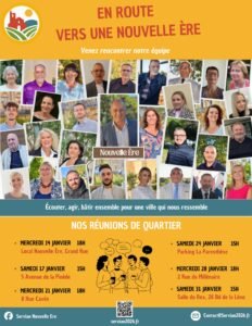 Sur ce mois de janvier, nous organisons six réunions de quartier pour vous présenter les premières orientations issues de ce travail collectif.